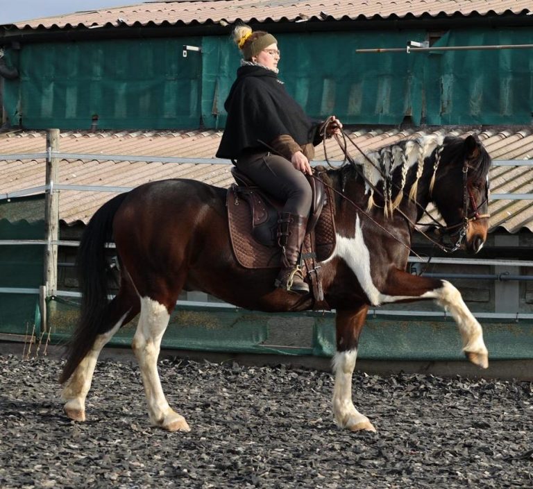 "Entdecke die Möglichkeiten" und hole aus deinem Pferd was in ihm steckt. Hier: Flying Dutschman in einer anfänglichen Interpretation des Spanischen Schritts